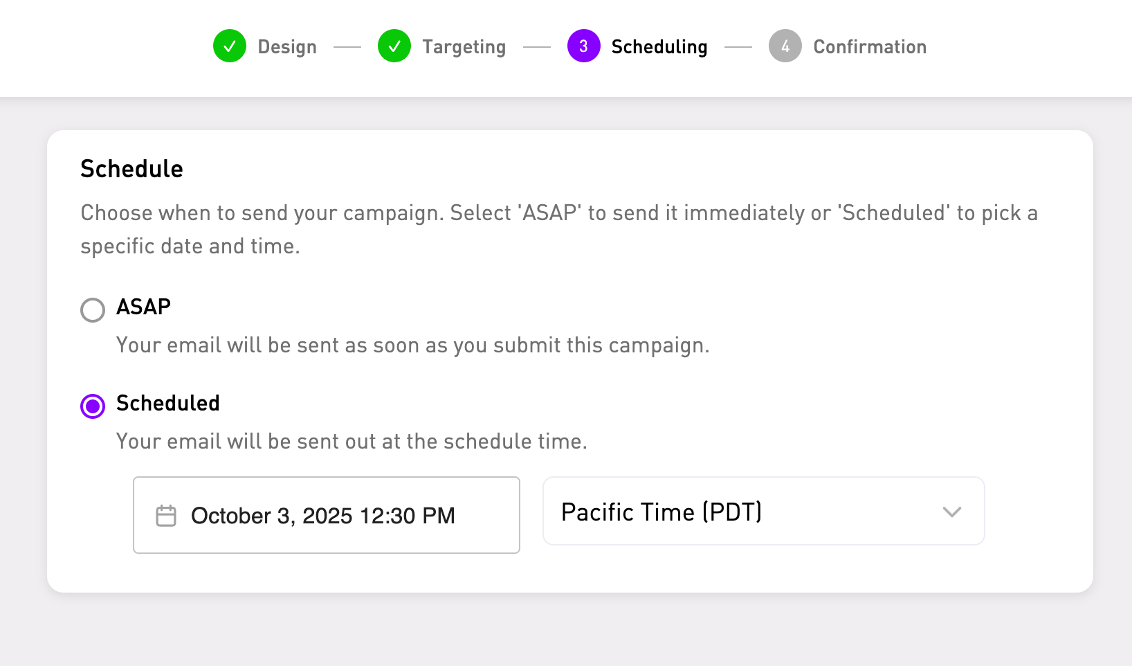 ASAP Sends: Hit “go” and your blast is live, instantly.