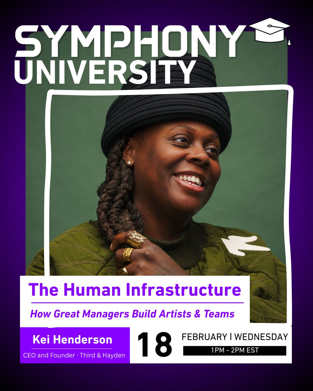 Join us on Wednesday, February 18th at 1:00 PM EST for an exclusive Symphony University session: The Human Infrastructure: The Work Behind Artists & Teams as Kei opens up her playbook for building artists and the teams around them — not just for a moment, but for the long run.