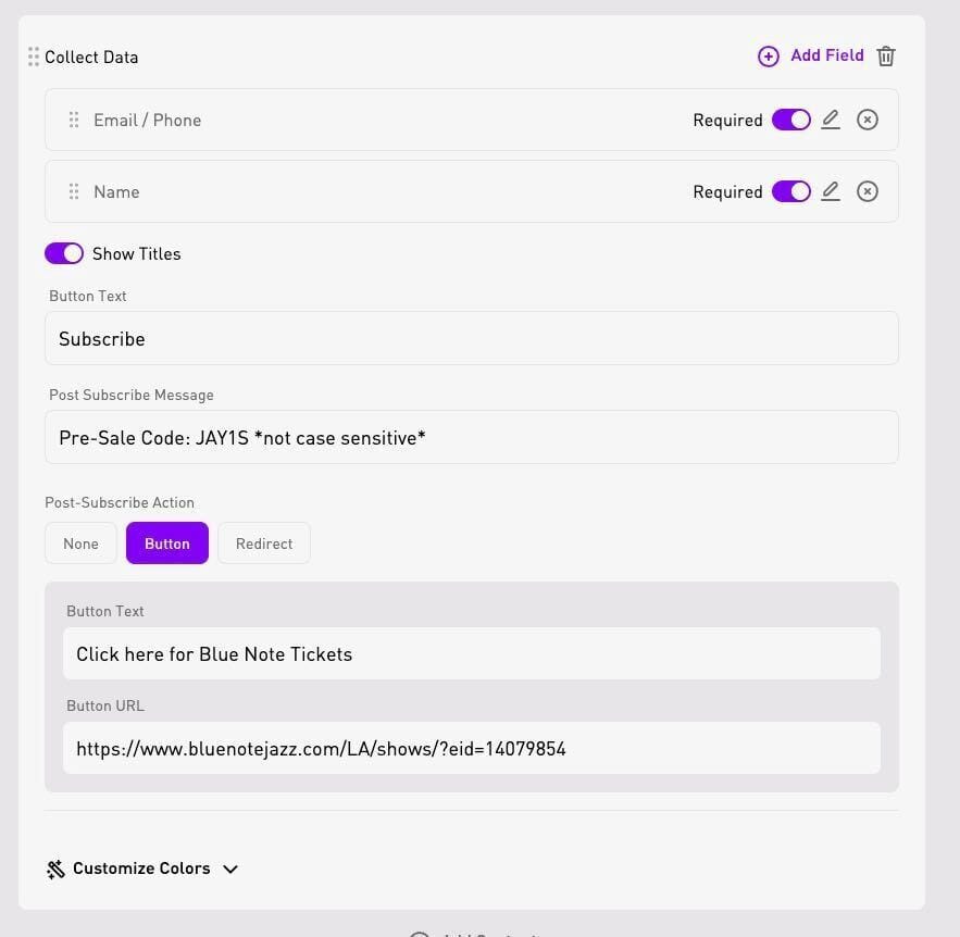 Proven results: Artist JayDon collected 50 email signups in just 10 minutes by gating a presale code using this feature 🤯