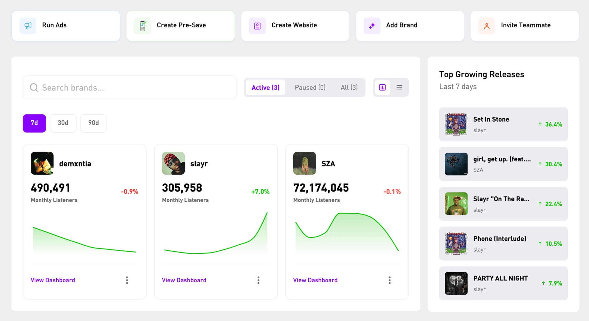 This new build fixes that: one dashboard for your entire roster, streaming analytics that show you what's heating up in real-time, and trackable links that tell you exactly which channels are driving results.